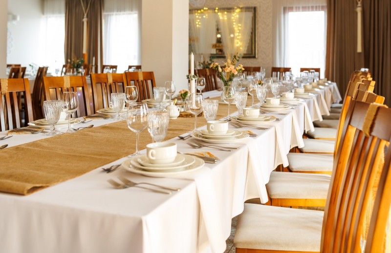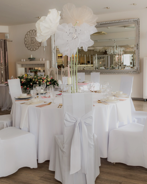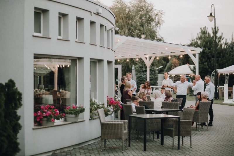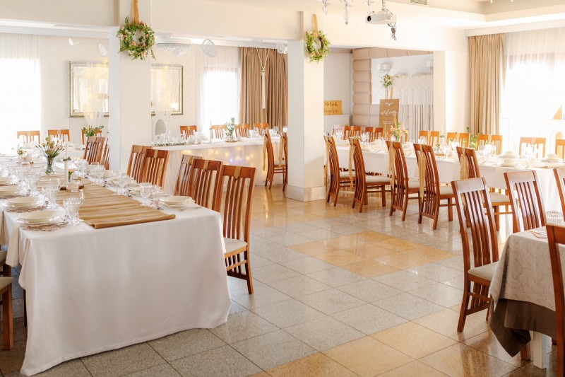 Dysponujemy dwiema klimatyzowanymi salami weselnymi – jedna dla 75 osób, druga z kolei – dla 120 osób. Eleganckie wnętrze będzie stanowić piękne tło dla całej uroczystości. Okazały ogród natomiast pozwoli Gościom na chwile wytchnienia na świeżym powietrzu. Profesjonalny zespół dopilnuje, by każdy element wydarzenia współgrał ze sobą, a Goście weselni czuli się wyjątkowo. Uczestników wesela zaskoczą niesamowite smaki potraw w specjalnie przygotowanym menu oraz dopracowana aranżacja stołów i całej przestrzeni. Po wspaniałej zabawie do białego rana, Młoda Para oraz Goście wypoczną w komfortowych pokojach, oferujemy bowiem bazę 60 miejsc hotelowych.