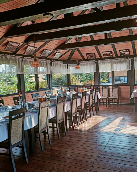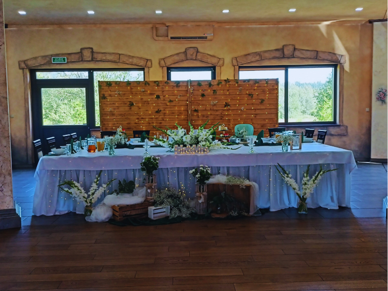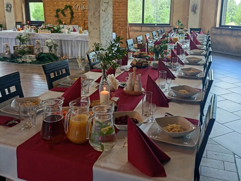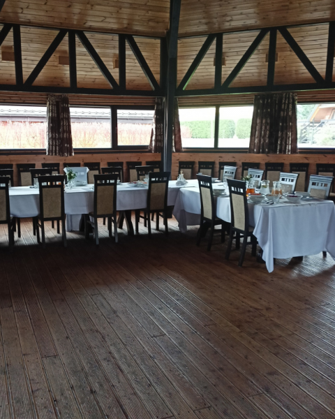Nasza nowa sala Weselno-Bankietowa przygotowana jest na przyjęcie maximum 150 gości,posiada: własną kuchnię, drewniany parkiet do tańczenia, nowoczesne nagłośnienie klimatyzację i ogrzewanie podłogowe