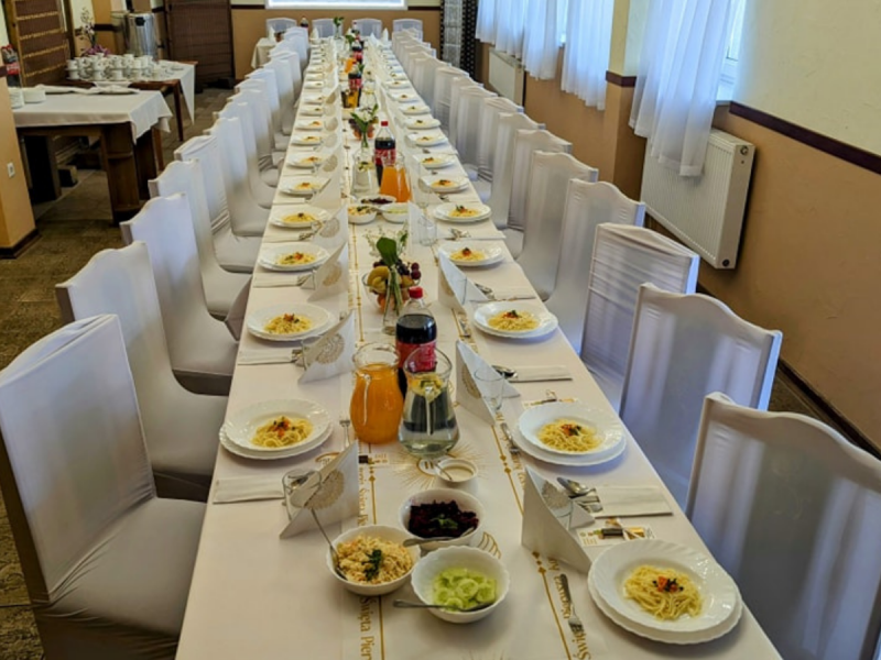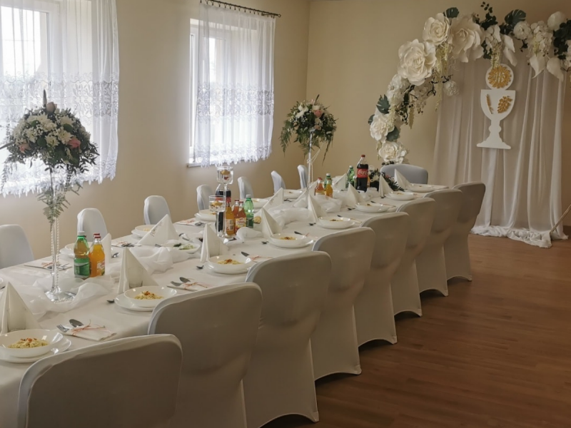 Dodatkowym atutem obiektu jest część hotelowa, która zapewnia komfortowy nocleg dla nowożeńców i zaproszonych gości. Profesjonalna i życzliwa obsługa dba o każdy detal organizacji, oferując wsparcie na każdym etapie przygotowań.