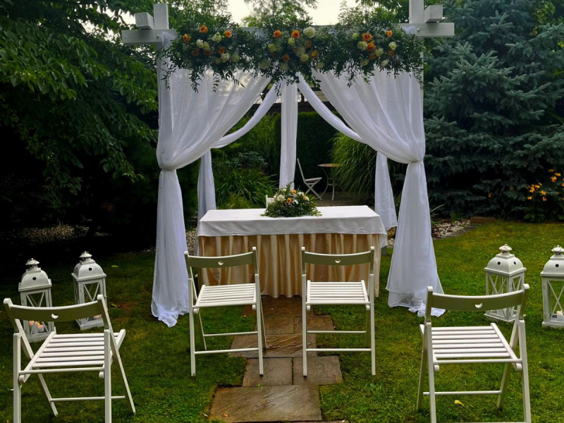 Do organizacji przyjęć weselnych udostępniamy Ogród Letni z zadaszoną altaną do 150 osób oraz urokliwym oczkiem wodnym. W Ogrodzie Letnim proponujemy kolację w formie live-cooking – gotowanie na żywo przy gościach.