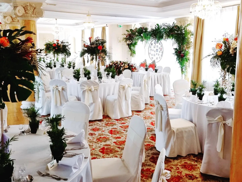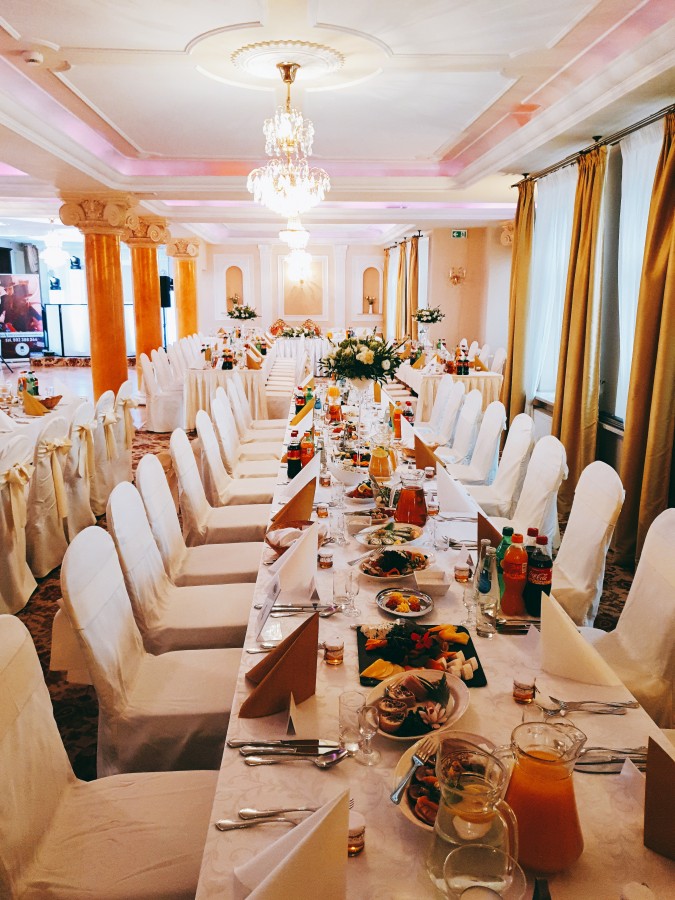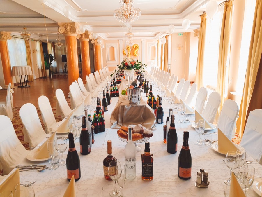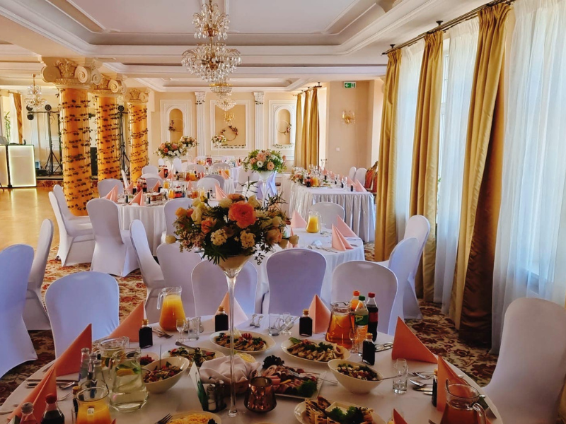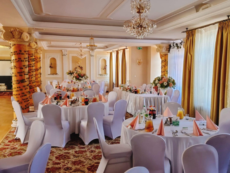 Nasz hotel posiada dwie sale specjalnie przygotowane do przyjmowania wszelkich rodzajów przyjęć i uroczystości. Sala główna restauracji hotelu Arkadia Royal idealnie nadaje się do przygotowania mniejszych przyjęć weselnych do 135 osób oraz sala Balowa, która pomieści do 250 gości weselnych.