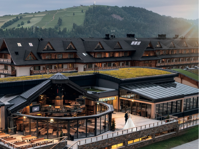 Szukasz idealnego miejsca na Twoje wymarzone przyjęcie weselne? Nowoczesna Karcma Bania, zaprojektowana w stylu alpejskim, z jasnymi wnętrzami, przeszkleniami i otwieranym dachem skierowanym w kierunku stoków Kotelnicy to strzał w dziesiątkę!