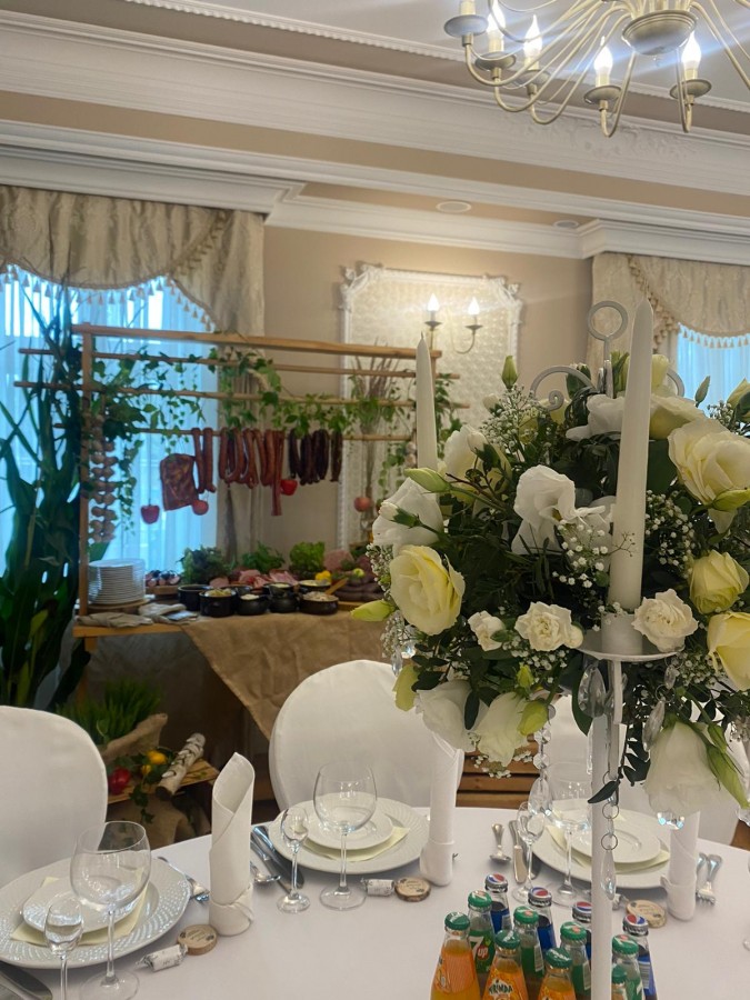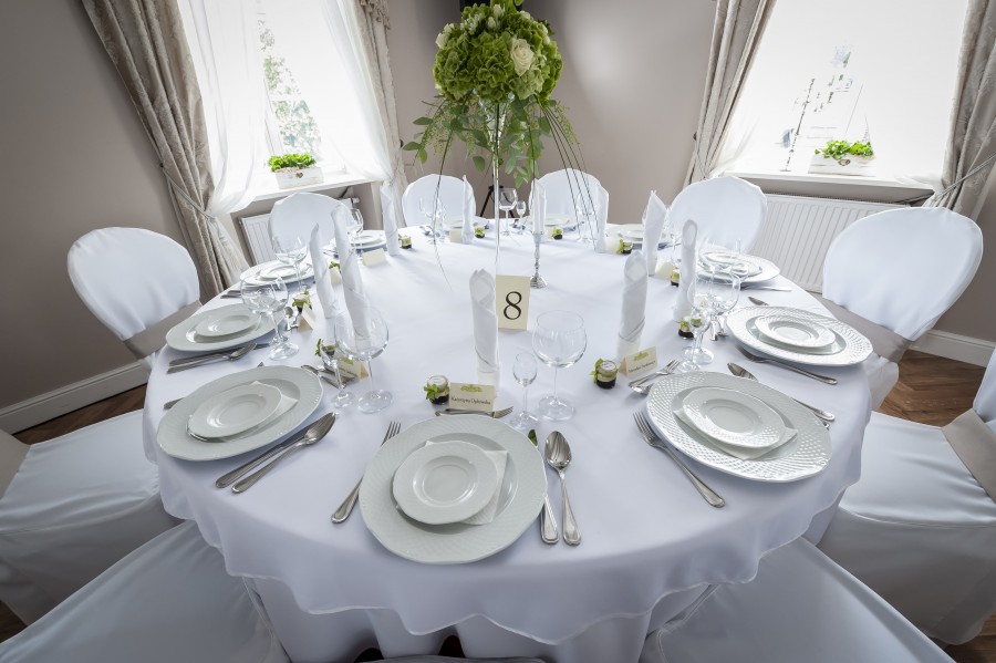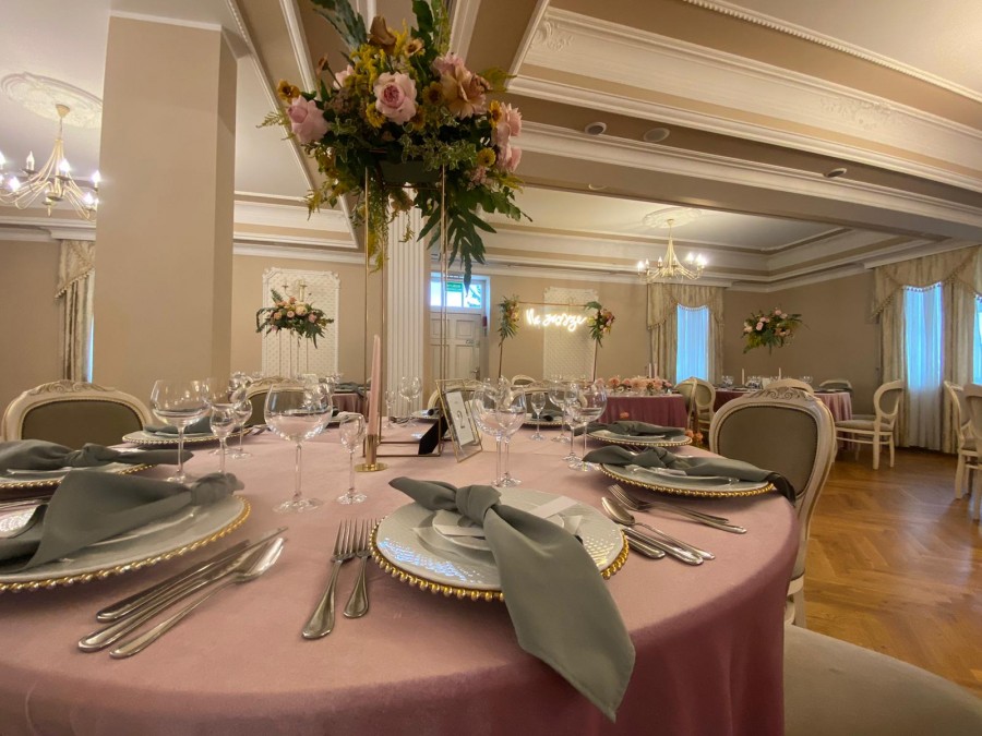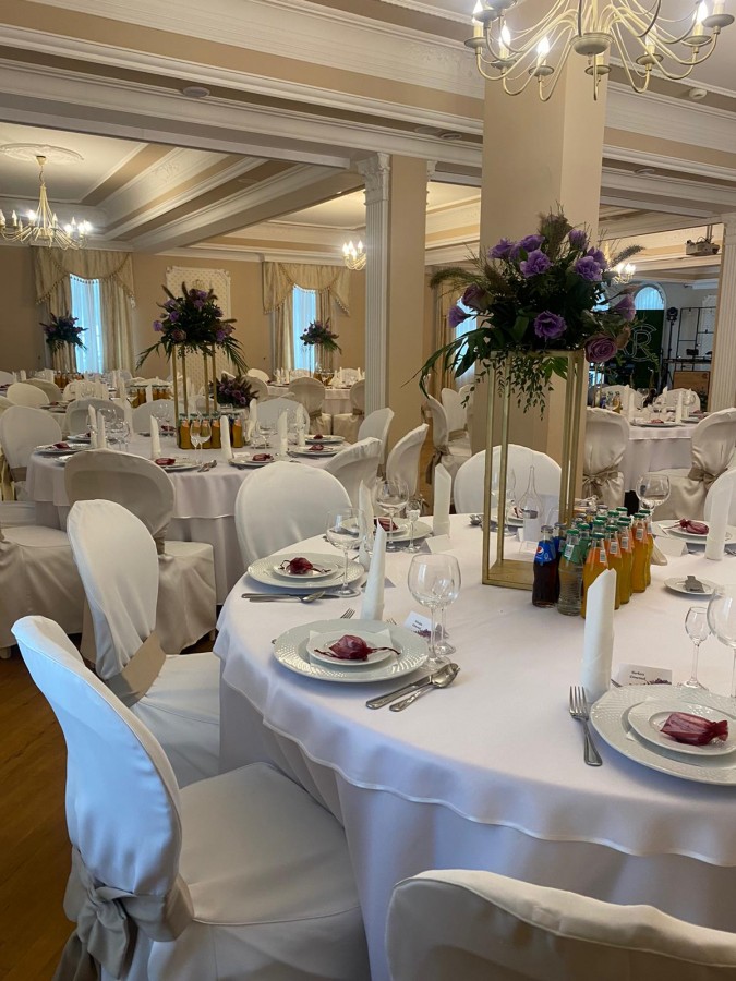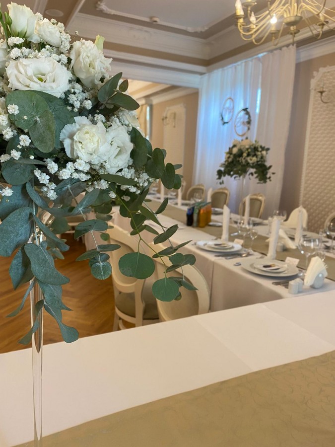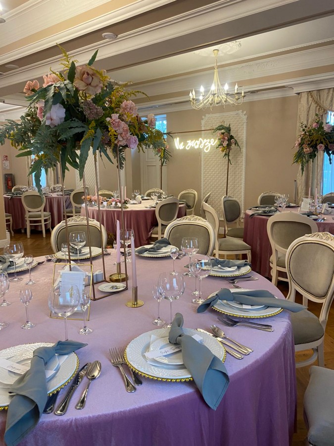 Sala Pałacowa, która znajduję się na parterze dworku zmieści 80 - ciu gości, klimat przyjęcia weselnego w zabytkowym obiekcie podkreślą zdobienia i wystrój nawiązujący do wnętrz pałacowych.