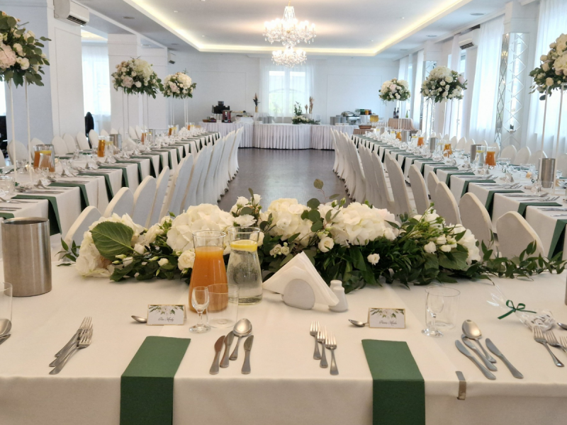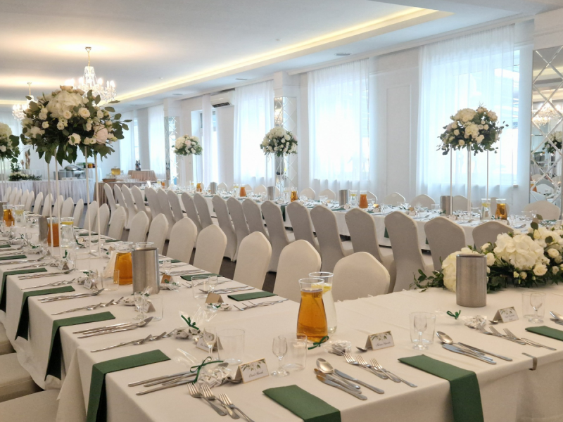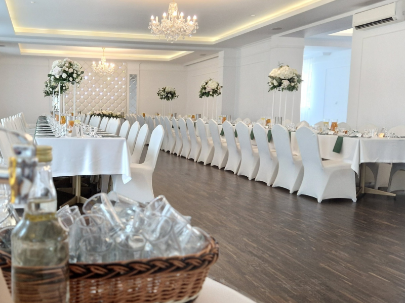Nasi Goście mają do dyspozycji 4 sale, które posłużą do organizacji wesel, chrzcin, komunii oraz wszelkich imprez okolicznościowych od 10 do 250 osób. Dysponujemy również parkingiem na 70 aut, co idealnie sprawdzi się podczas rodzinnych spotkań.