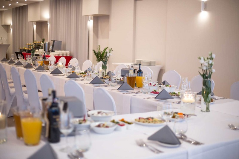 Mamy przyjemność zaproponować Państwu przepiękną Restaurację Piano oraz Salę Bankietową, gdzie elegancko zaaranżowane wnętrza, pięknie udekorowane stoły oraz wysoko wykwalifikowany personel stworzą idealne tło dla tak ważnego w Państwa życiu wydarzenia.