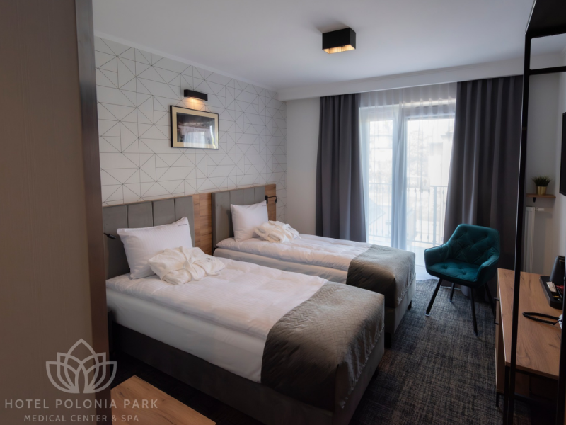 Hotel Polonia Park**** Medical Center & SPA zlokalizowany zaledwie kilka kroków od największej atrakcji Buska Zdrój, Parku Zdrojowego. Design obiektu nawiązuje do architektury międzywojnia połączonej z nowoczesnymi rozwiązaniami, tworząc doskonałe warunki do komfortowego wypoczynku zarówno podczas podróży turystycznych, rehabilitacyjnych czy służbowych. Hotel oddaje do dyspozycji Gości parking oddalony zaledwie 300 metrów od Hotelu.
