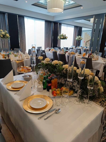 Ślub to jedno z najważniejszych wydarzeń w życiu. Nasza oferta weselna "Najwspanialsze chwile" sprawi, że będzie to niezapomniane przyjęcie zarówno dla Państwa Młodych, jak i dla ich Gości. W efektownie udekorowanej sali, przy stołach suto zastawionych specjałami naszej kuchni ugościmy do 300 osób. Dla Młodej Pary oddajemy ekskluzywny apartament specjalnie przygotowany ze śniadaniem.