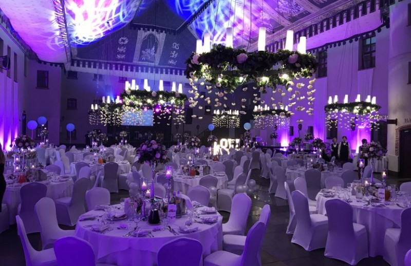 Zadaszony Dziedziniec to najbardziej olśniewająca i reprezentacyjna w tej kategorii sala weselna na Mazurach (950 m2 powierzchni i 8 metrów wysokości); na nim spełnimy nawet najbardziej szalone marzenia i fantazje związane z Państwa przyjęciem.