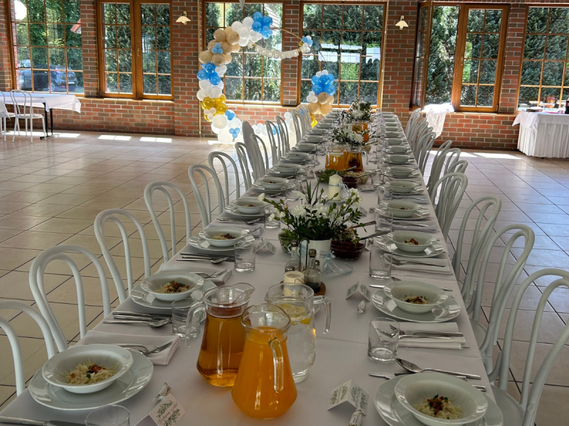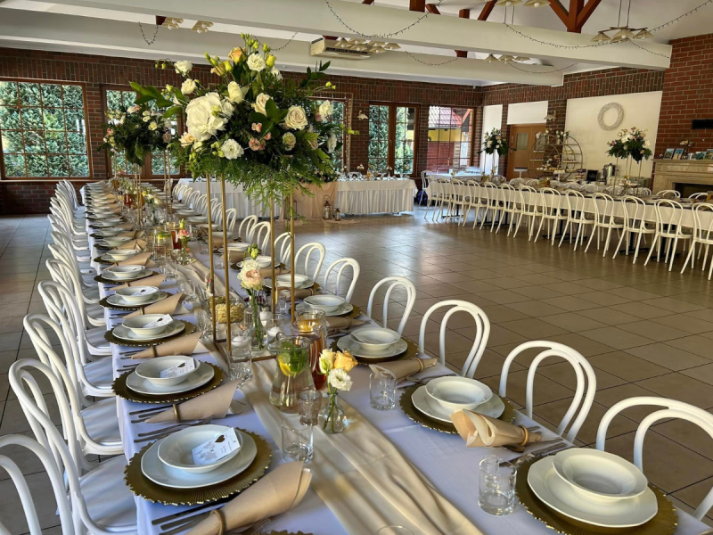 Sala bankietowa Leśniczówki Przyłęsko dostosowana jest do przyjęcia nawet 140 osób. Klimatyzowane pomieszczenie może zostać połączone z przylegającą salą konferencyjną, idealną do animacji dla najmłodszych Gości lub dla osób, które nad taniec i śpiew przedkładają spokojne rozmowy. Pary Młode planujące wesele dla ponad 150 osób mogą skorzystać z opcji rozłożenia obok sali dodatkowego namiotu z drewnianą podłogą do tańca.