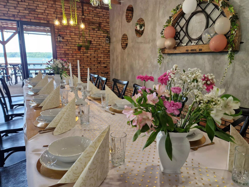 Zapraszamy do sali bankietowo-konferencyjnej przeznaczonej dla około 70 osób. Pięknie położona, z tarasem, z którego rozpościera się zachwycający widok na Jezioro Sławskie.