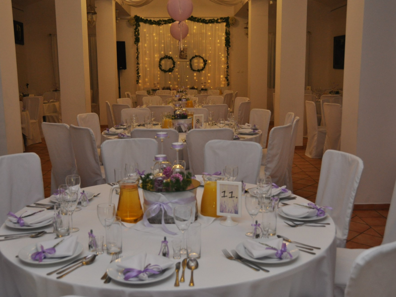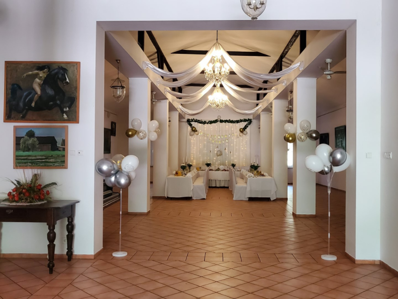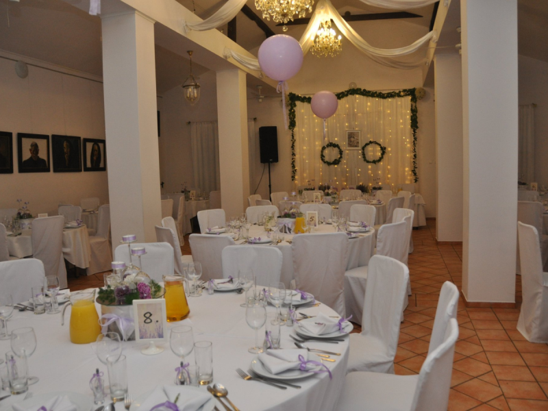Dysponujemy trzema obszernymi salami. Elegancka sala kominkowa z barem i kominkiem oraz sala kryształowa są idealne na zorganizowanie wesela, ceremonii ślubnej, przyjęcia ślubnego, bankietu firmowego czy komunii w stylu eleganckim.