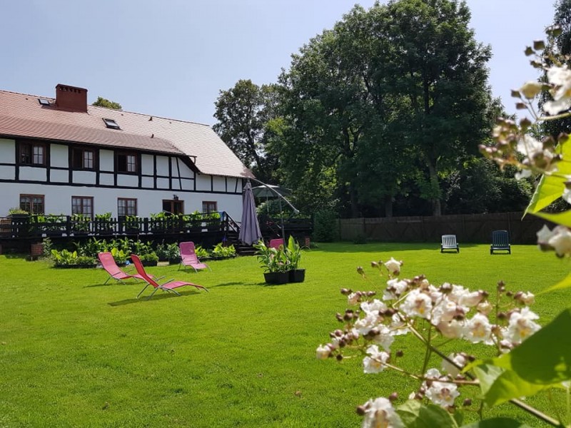 Nasz dom jest wkomponowany w miejscową łużycką architekturę. Do dyspozycji gości jest karczma z jadalnią i kominkiem, sala taneczna, taras z widokiem, duży ogród z miejscem na ognisko i murowanym grillem. Zapraszamy do obejrzenia filmu z domu na naszym profilu.