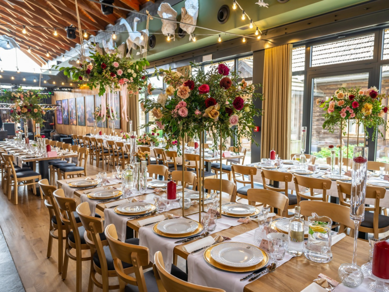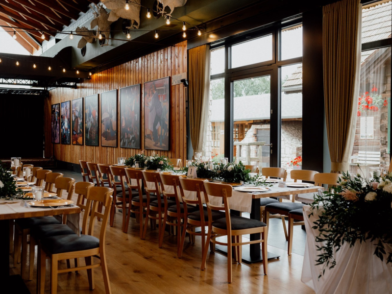 Dobrze trafiłeś! Na terenie Folwarku Kamyk znajduje sie duży dom biesiadny o wdzięcznej nazwie Stodoła Folwark. Oprócz sali bankietowej w stylu boho, w budynku znajduje się przytulna kawiarnia oraz pensjonat, w którym można przenocować gości. Dodatkową atrakcją są otaczające folwark wiejskie krajobrazy, stawy i oczka wodne, altany, zwierzyniec itp.