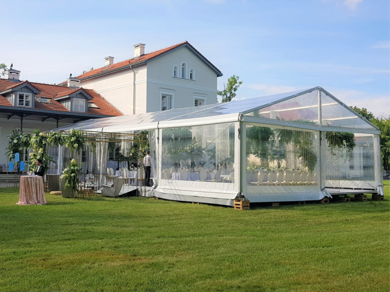 Hale namiotowe to idealne rozwiązanie na stworzenie przestrzeni idealnej na wesele lub inne przyjęcie okolicznościowe. Całoroczne, solidne konstrukcje mają szereg zastosowań i możliwości. Zarówno wielkość hal jak również ich wyposażenie możemy dostosować indywidualnie do Państwa oczekiwań i zapotrzebowania.