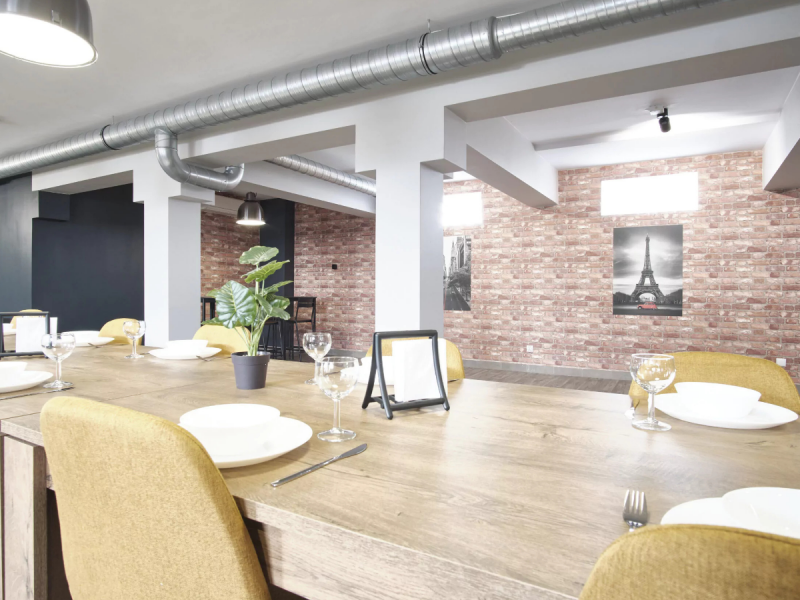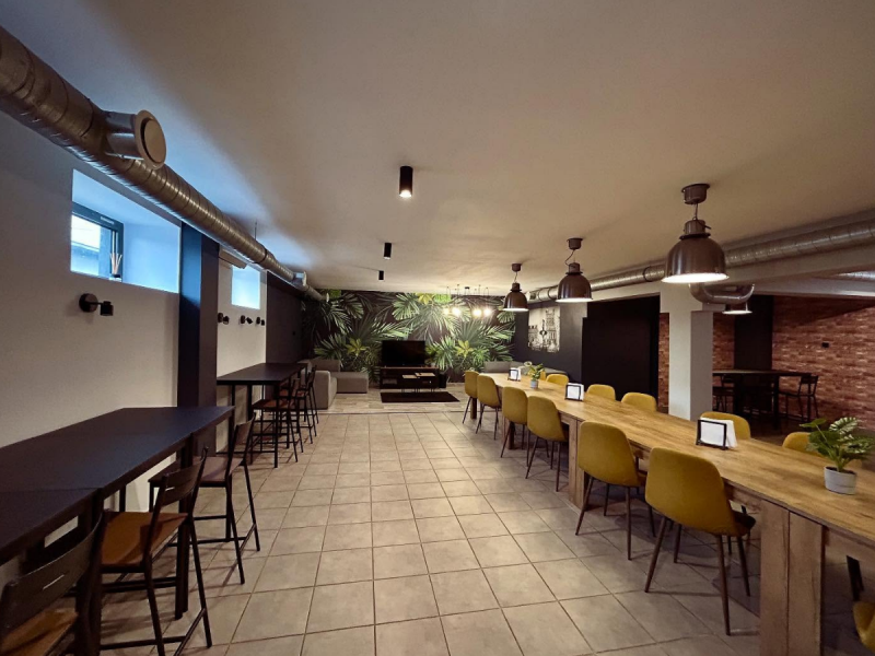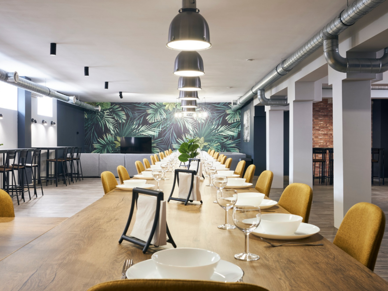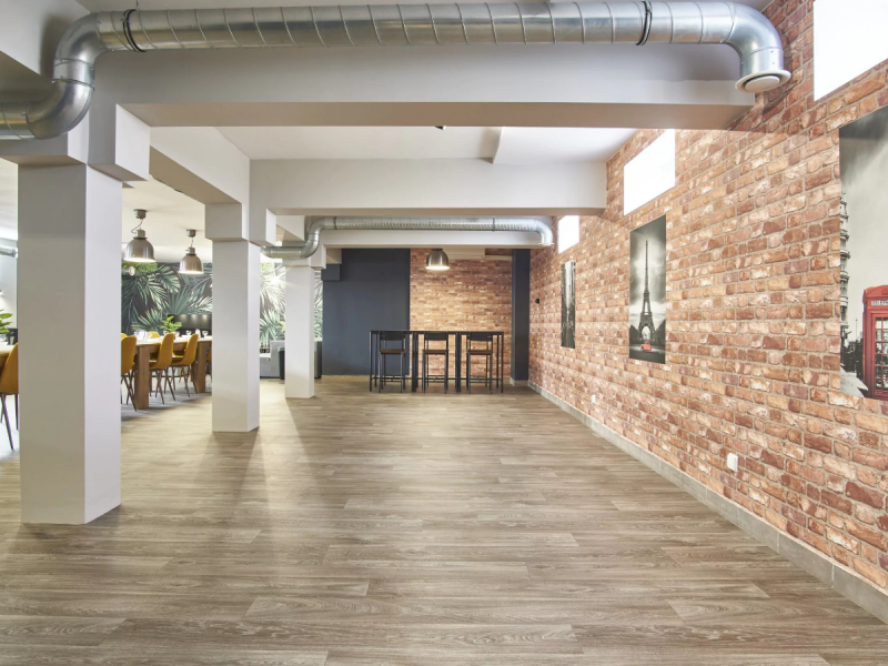 Wnętrze charakteryzuje się nowoczesnym designem, dużą otwartą przestrzenią oraz klimatyzacją, co zapewnia komfort gościom o każdej porze roku. Loftowy charakter sali stanowi idealne tło dla weselnych dekoracji i pięknych zdjęć, a kameralna atmosfera sprzyja wspólnemu świętowaniu bez pośpiechu i presji.