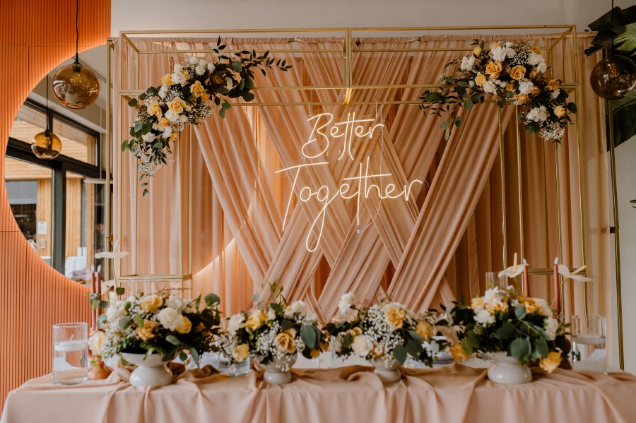 Styl, wystrój i dekoracje sali weselnej.