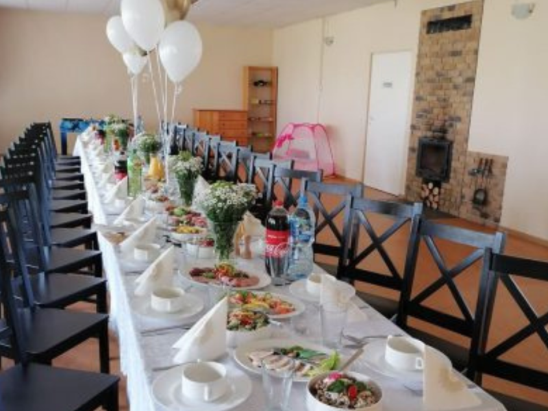 Do dyspozycji gości sala kominkowa, namiot plenerowy, 2ha terenu do zabaw i spacerów. Oferujemy szereg atrakcji dodatkowych dla naszych klientów, m.in. gry paintballowe, park linowy, plac zabaw dla dzieci, basen.