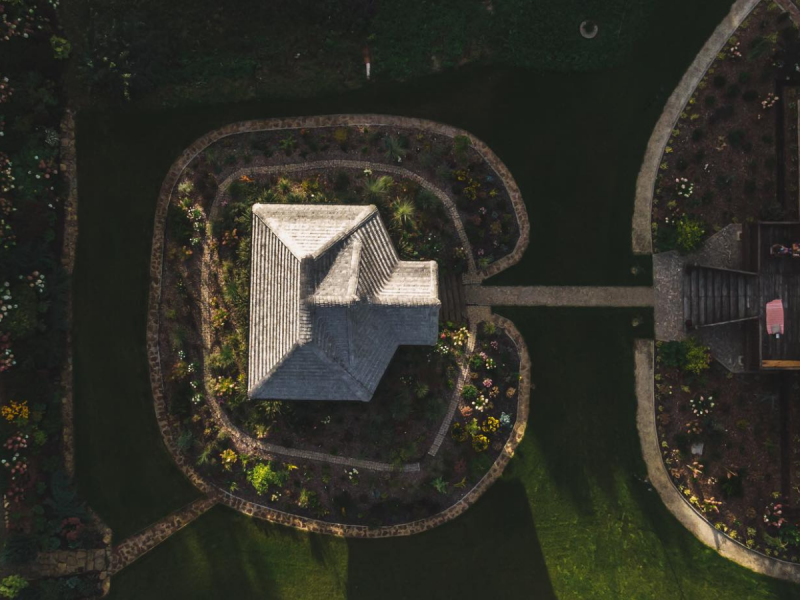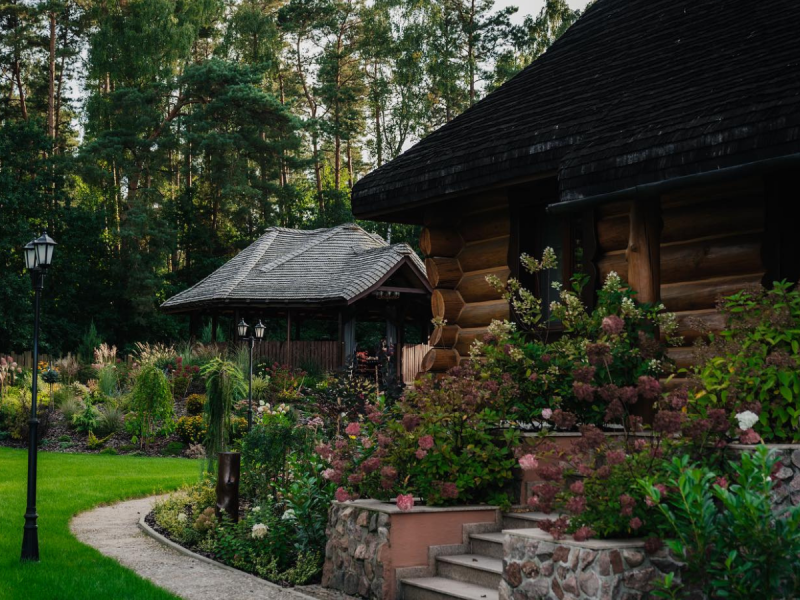 Kwietny, duży ogród, niczym ogród botaniczny okala Rozpustę w słoneczne dni. Można leniwie spędzić czas na tarasie, z widokiem na las, w hamaku albo w altanie zorganizować przeróżne warsztaty, czy grilla. Stół w altanie zmieści nawet do 15 osób.