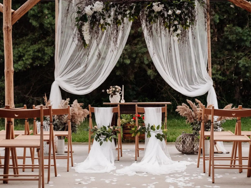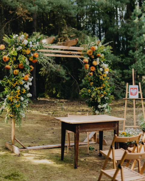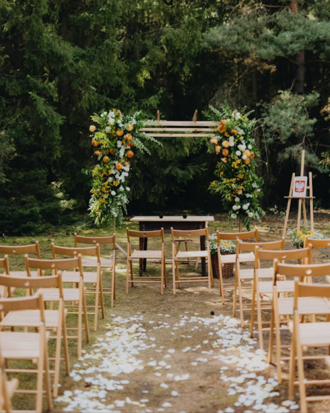 Tak, posiadamy piękną altankę na ślub cywilny i krzesełka, na terenie posiadamy piękny las, także macie Państwo możliwość wzięcia ślubu w pięknej, leśnej scenerii.