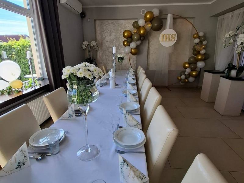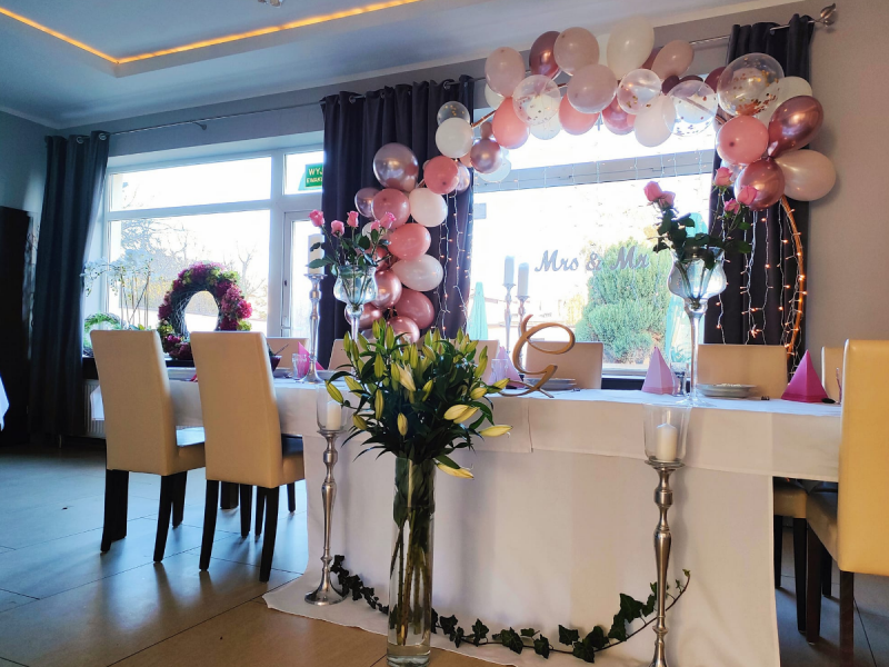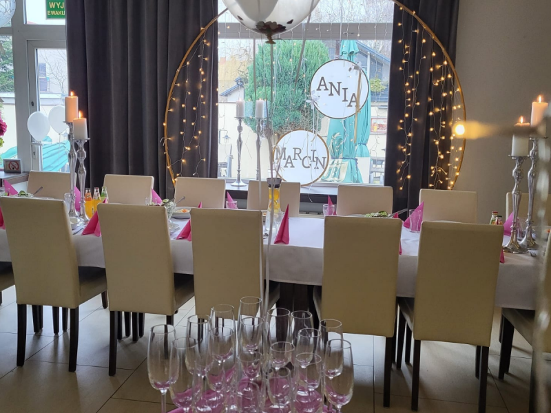 Nasza stylowa sala weselna pomieści do 40 osób, a nastrojowe wnętrza i subtelna dekoracja tworzą idealne tło do świętowania jednego z najważniejszych dni w życiu.