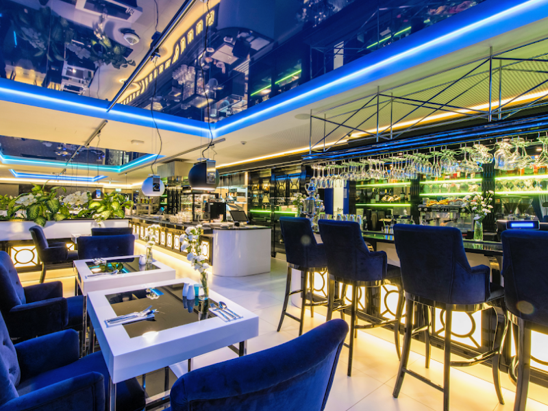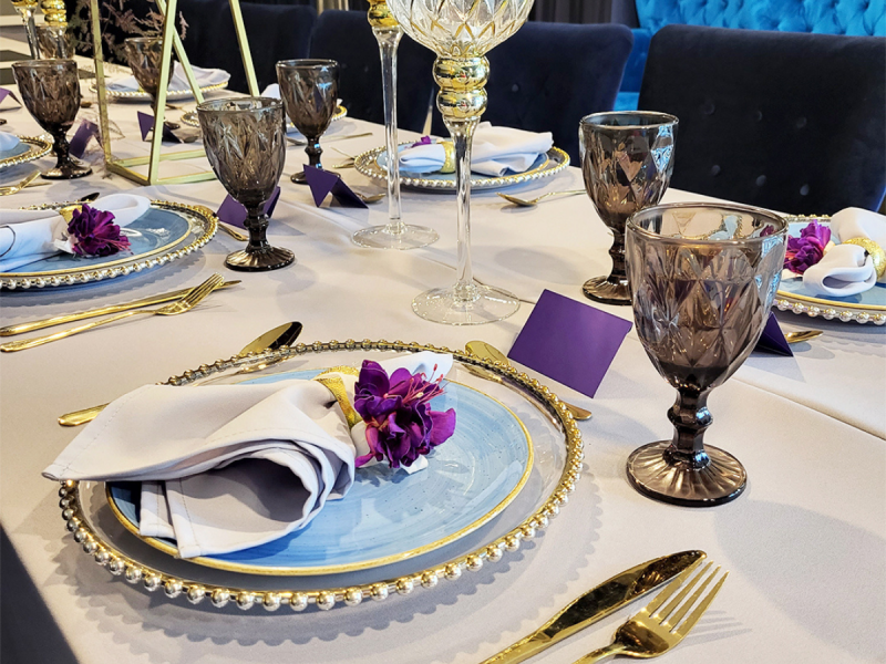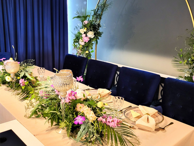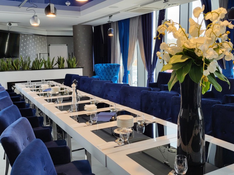 Piękne, szklane schody prowadzą wszystkich naszych gości przyjęcia weselnego do równie inspirujących, przestronnych wnętrz restauracji First Floor. Projektant sali weselnej zadbał o harmonię kolorów, jasną przestrzeń, funkcjonalne, ale i o wysublimowane rozwiązania, które sprawiają, że goście czują się tutaj komfortowo i chętnie sięgają po serwowane posiłki. To na pewno niebanalna sala weselna, dla osób, które z najdrobniejszych szczegółach planują przebieg wyjątkowego przyjęcia. W tak pięknym otoczeniu podajemy zawsze smaczne, świeże dania, które zachwycają pełnią smaku, aromatem i pozwalają odkryć kunszt tutejszych kucharzy.