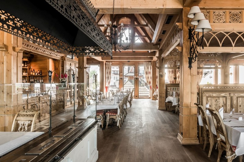 Każdy element wnętrza restauracji jest dopracowaną częścią obrazu składającego hołd słynnemu twórcy stylu zakopiańskiego - Stanisławowi Witkiewiczowi. Odwiedzając nas możesz być pewien prawdziwej uczty zmysłów! Piękne wnętrze, kulinarne arcydzieła i oszałamiający widok na Tatry.