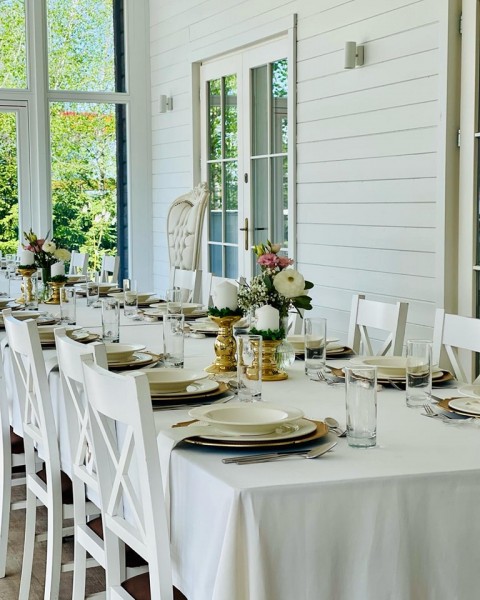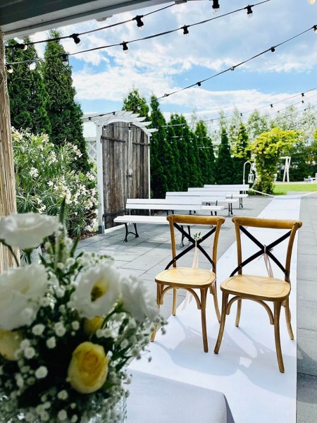 Sala Skandynawska powstała z myślą o mniejszych weselach, poprawinach i imprezach okolicznościowych. Białe drewno, duże okna, bezpośrednie wyjście na taras i ogród – przytulnie i romantycznie. Sala mieści 60 osób z tańcami.