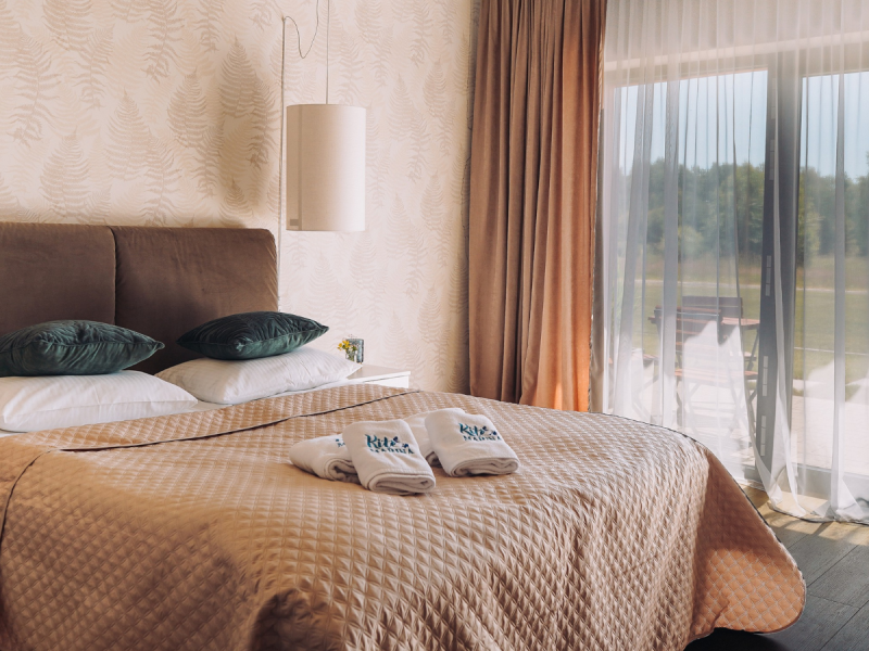 Do dyspozycji Gości jest 37 pokoi z kojącym widokiem na jezioro lub zieleń i 6 pokoi Premium. Ponadto zadbaliśmy o przestrzeń do relaksu - strefa SPA (sauna i jacuzzi) i miejsce do czytania i rozmów (kilka stref wypoczynkowych z wygodnymi kanapami i fotelami). W ręce najmłodszych Gości oddajemy atrakcyjną salę zabaw.