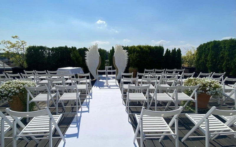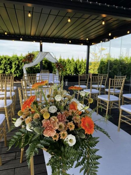 Nasz ślub i wesele miało miejsce w Restauracji Aroma w czerwcu 2014 roku. Jesteśmy zachwyceni, tak jak nasi goście, wspaniałą kuchnia, przepysznym tortem, wystrojem sali, ale również niepowtarzalną możliwością zaślubin na tarasie obiektu. Nie można nie wspomnieć o znakomitej obsłudze i menadżerze sali -Panu Jakubie, który odpowiadał na każde nasze pytania i realizował nasze prośby. Restauracja zapewniła nam kompleksową obsługę, wynajęliśmy kierowce, pokoje dla gości, zrobiono nam na miejscu wspaniały tort, wszelkie aranżacje kwiatowe i na dodatek dostosowano taras do ceremonii zaślubin. Ustalanie menu miało miejsce wraz z szefem kuchni i nie było problemu ze specjalnym zamówieniem dla wegetarian.
