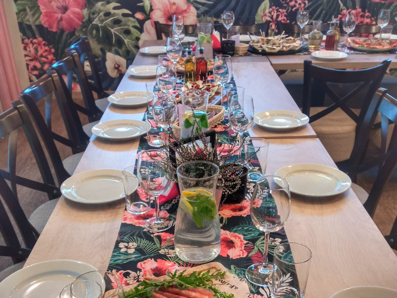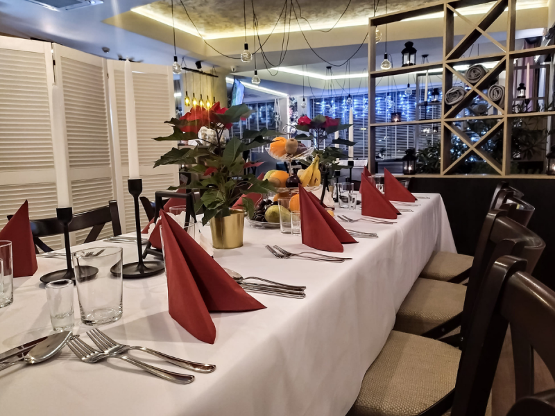 Przestronne, a jednocześnie przytulne wnętrze restauracji Aroma pozwala na kameralne spotkanie w gronie kilku osób, jak również na zorganizowanie dużej imprezy rodzinnej lub firmowe.