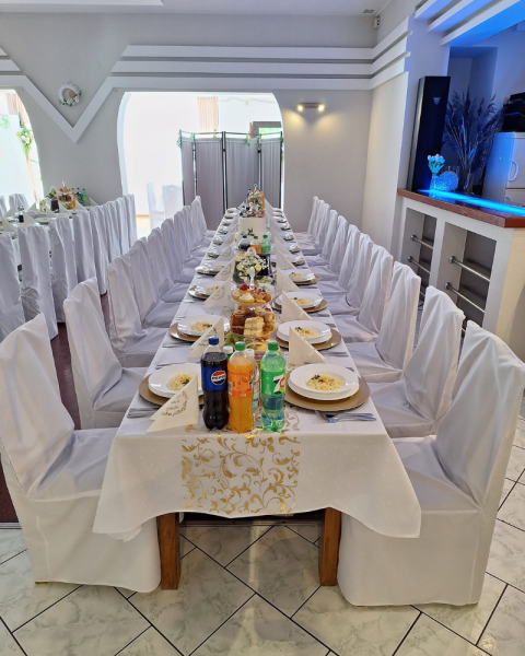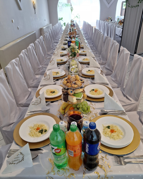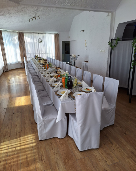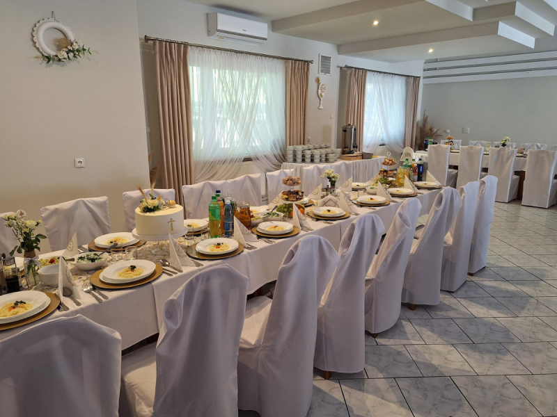 W naszym lokalu do Państwa dyspozycji oddajemy: salę bankietową (do 120 osób), gdzie organizujemy: przyjęcia weselne, przyjęcia komunijne, chrzciny, imprezy firmowe, imprezy integracyjne, wigilie firmowe oraz wszelakiego rodzaju imprezy okolicznościowe (urodziny, imieniny, osiemnastki, stypy itp.)