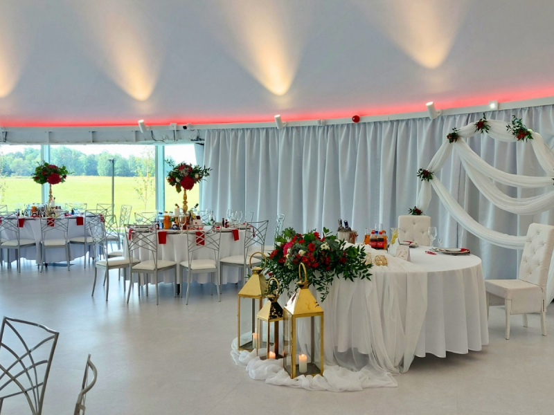 Nasza sala weselna jest jak czyste płótno, na którym możemy wyczarować wszystko o czym marzycie. Przestronna, jasna, daje nieograniczone wręcz możliwości konfiguracji i doboru stylu oraz kolorystyki dodatków. Dzięki temu wszystkie organizowane przez nas wesela są jedyne w swoim rodzaju – nie ma drugiej takiej samej uroczystości.
