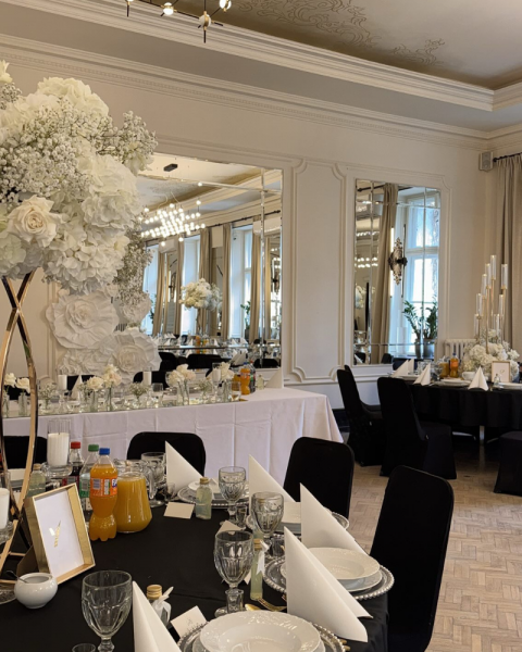 Eleganckie i klimatyczne, uniwersalne wnętrze restauracji KTW Park stanowi rewelacyjne tło dla przyjęć w różnych stylach i o rozmaitych motywach przewodnich. Stylowe, duże lustra optycznie powiększają przestrzeń i tworzą wyjątkową atmosferę podczas przyjęcia. Sala znakomicie prezentuje się, gdy zastosujemy w niej dekorację światłem, co robi ogromne wrażenie na wszystkich gościach i buduje fantastyczny nastrój.