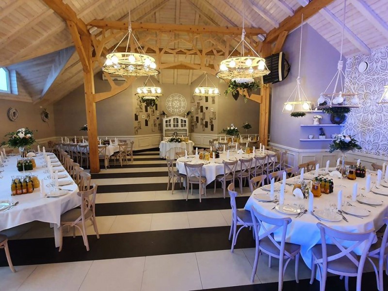 Do Państwa dyspozycji oddajemy w pełni klimatyzowaną salę weselną dla 120 osób, plac zabaw dla dzieci oraz bezpłatny parking.