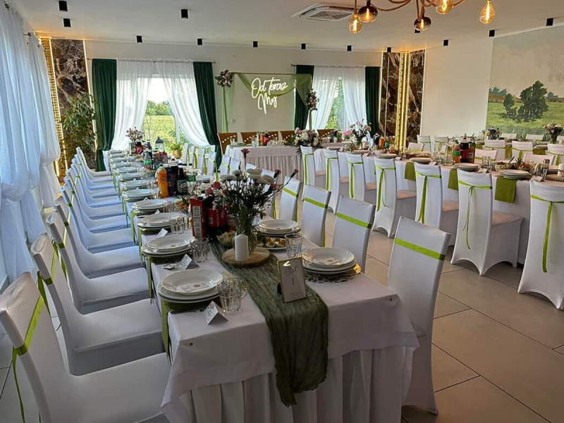 Obiekt jest przygotowany pod wszelkie imprezy okolicznościowe: bale, sylwestry, wesela, komunie, konferencje, zjazdy, stypy, itp.