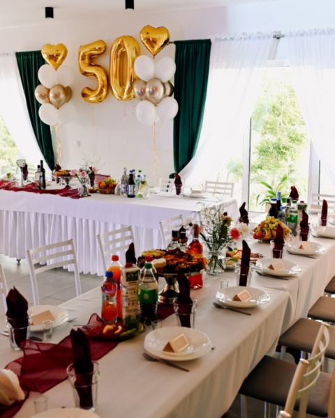 Mniejsze przyjęcia okolicznościowe do 30 osób organizujemy w sali przy ulicy Różanej 46b w Mławie.