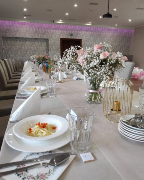 Z radością i zaangażowaniem organizujemy różnorodne wydarzenia, takie jak przyjęcia weselne, komunie, chrzciny, konferencje, wystawne bankiety oraz uroczystości rodzinne. Jesteśmy dumni z tego, że możemy być częścią tych ważnych chwil i tworzyć wyjątkowe wspomnienia dla naszych Gości.