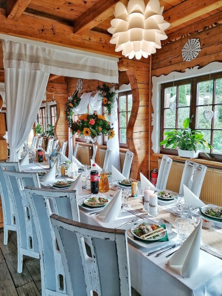 Restauracja Smaki Na Szlaku to idealne miejsce na Twoje wymarzone przyjęcie okolicznościowe. Wyobraź sobie klimatyczną uroczystość w przytulnym miejscu ze smaczną i naturalną kuchnią, uczynną obsługą i atrakcjami dla dzieci.... Nie musisz już sobie wyobrażać, po prostu zarezerwuj! To idealne miejsce na Twój wymarzony dzień. Zorganizujemy dla Ciebie każdą uroczystość: chrzciny, I komunię świętą, przyjęcie ślubne, urodziny czy jubileusz. Dla każdej z okazji mamy w zanadrzu odpowiednie menu dopasowane do Twoich potrzeb i czasu, który chcesz przeznaczyć na uroczystość. To naturalne, że inne potrzeby mamy organizując chrzciny, a inne urządzając wesele. Ponadto, możesz liczyć na odpowiednią oprawę i dekoracje. Smaczna naturalna kuchnia, miła obsługa, doskonała lokalizacja w Polanicy-Zdroju, a także parking przy obiekcie sprawią, że wszystko przebiegnie doskonale, a ten wyjątkowy dzień na długo zapisze się pięknymi wspomnieniami w pamięci Waszych gości. Dodatkowym atutem jest bliskość Parku Zdrojowego, gdzie możecie zorganizować sesję zdjęciową lub dodatkową atrakcję. Możesz polegać na naszym doświadczeniu i zająć się tym, co najcenniejsze - celebrowaniem tych wyjątkowych i ulotnych chwil w gronie najbliższych. Dzieci także nie będą się nudzić - odnajdą tutaj kącik zabaw, a dorośli zaczerpną odrobiny spokoju :).