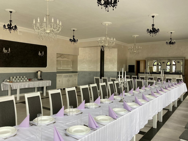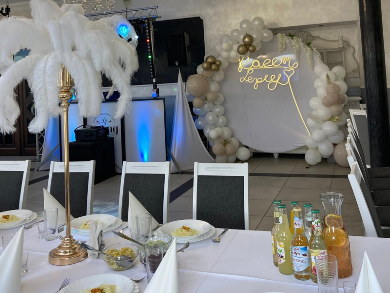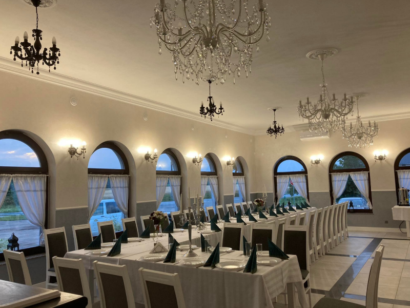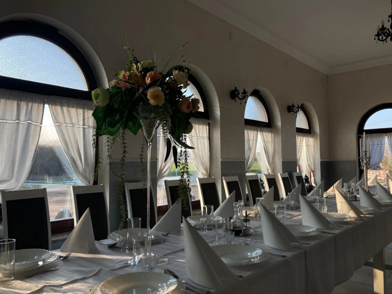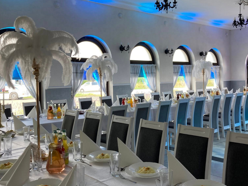 Obiekt oferuje elastyczną aranżację przestrzeni – zarówno pod klasyczne przyjęcie weselne, jak i nowoczesną uroczystość z parkietem tanecznym. Profesjonalna obsługa dba o każdy detal wydarzenia, służąc wsparciem na każdym etapie organizacji.