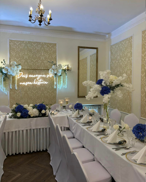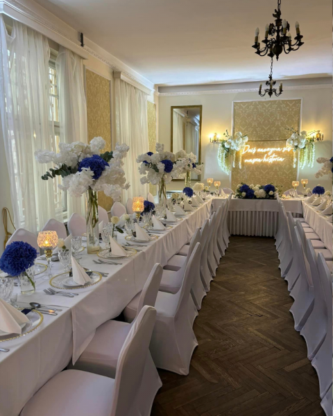 Do dyspozycji naszych Gości pozostają trzy pomieszczenia bankietowe, w których jesteśmy w stanie pomieścić 120 osób przy stołach. Plener jest z kolei przystosowany do przyjęcia nawet 200 osób. Zapewniamy, że nasza elegancka sala weselna odpowie na oczekiwania nawet najbardziej wymagającej Pary Młodej i zachwyci każdego eleganckimi, zachwycającymi swoim urokiem detalami.