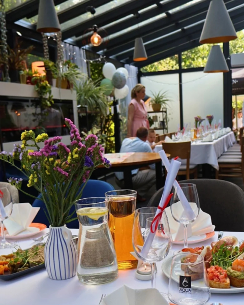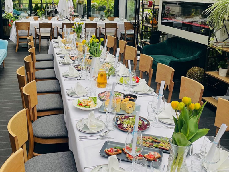 Nasze wnętrza łączą elegancję z luźnym klimatem nowoczesnej restauracji – idealne zarówno na kameralne przyjęcia, jak i bardziej huczne wesela. Zespół doświadczonych kucharzy zadba o to, by na stołach pojawiły się dania, które zachwycą nawet najbardziej wymagających Gości – kuchnia autorska, najwyższej jakości produkty i perfekcyjna prezentacja to nasz znak rozpoznawczy.