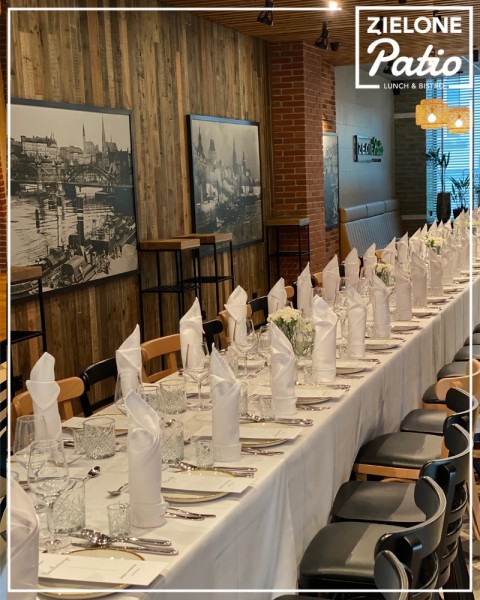 Zielone Patio to wyjątkowa restauracja w sercu Szczecina, w biurowcu Posejdon, idealna do organizacji przyjęć weselnych, a także innych uroczystości okolicznościowych. Nasze przestrzenie łączą elegancję z naturą, tworząc niezapomnianą atmosferę na każdy ważny dzień.