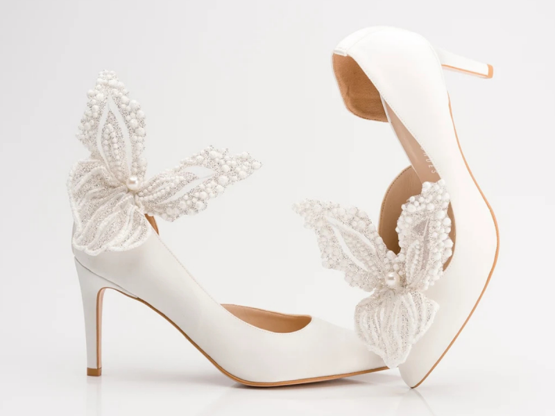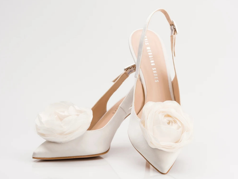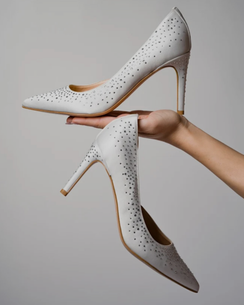 Włoskie atłasowe cholewki, które podkreślają klasę i ponadczasową elegancję każdej pary. Kolekcja biżuterii do butów wykonywana jest z jedwabiu Armani i tkaniny Pronovias.