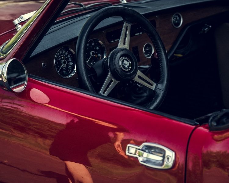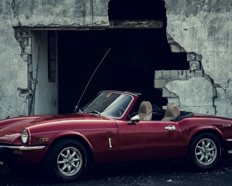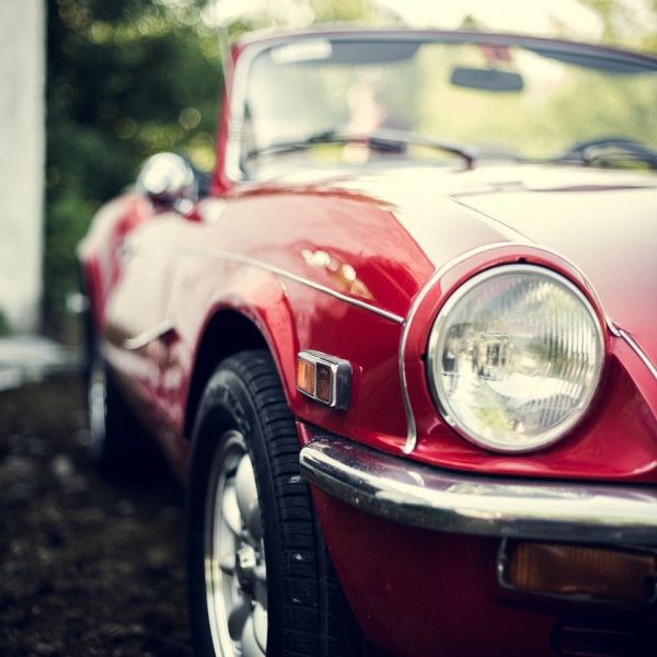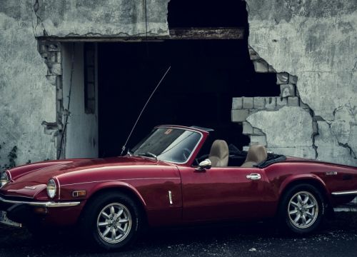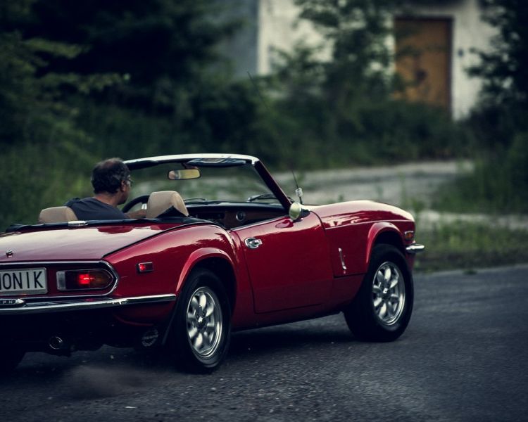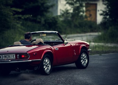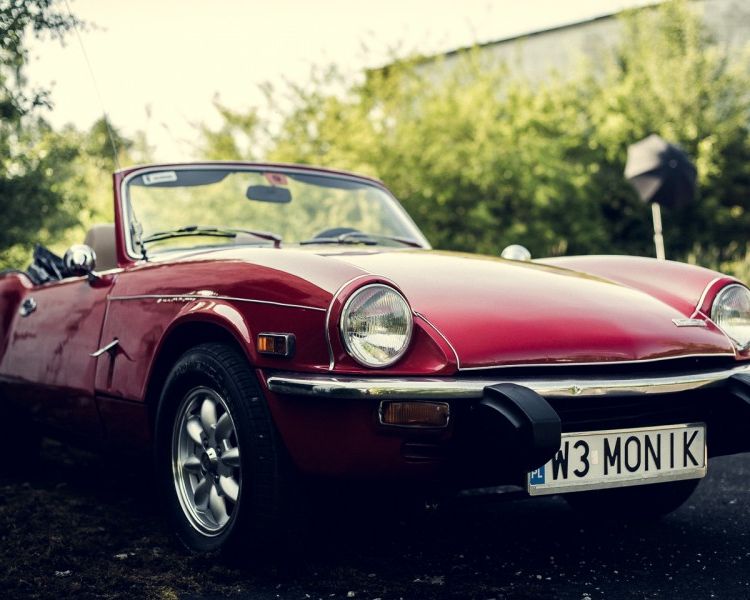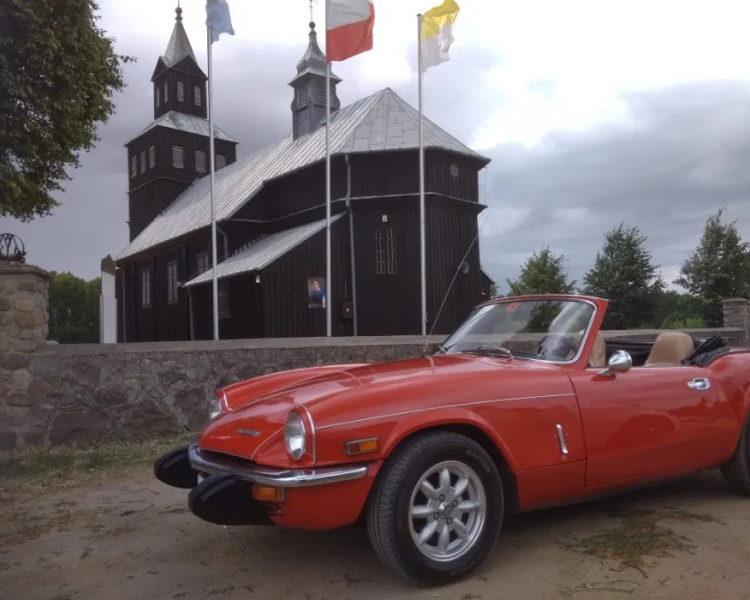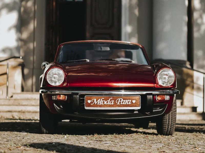 Wynajem samochodu na ślub - czerwony kabriolet Triumph Spitfire