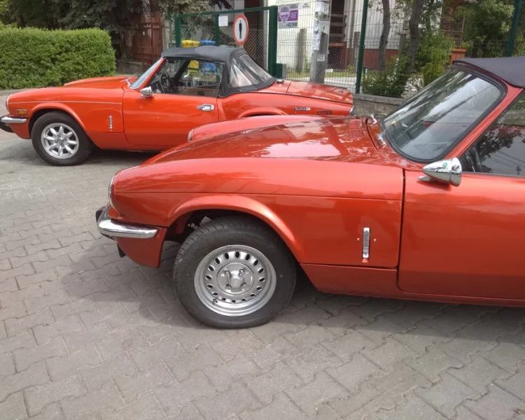 Rok produkcji 1972 Triumph Spitfire wersja amerykańska skrzynia biegów manualna kolor czerwony i drugi rok produkcji 1978 wersja europejska kolor bordowy.