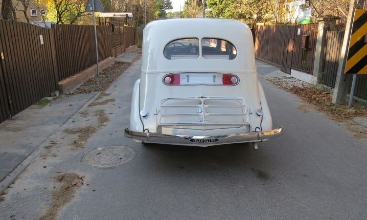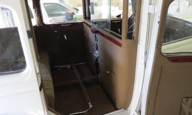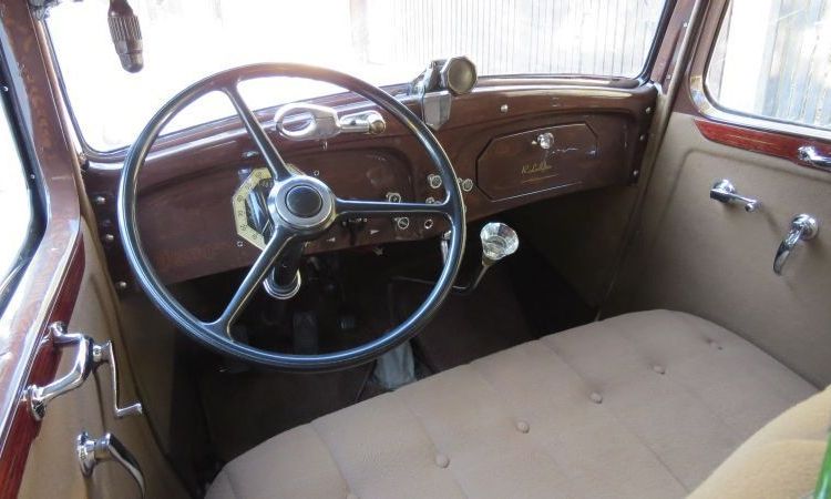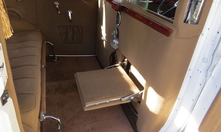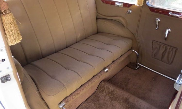 Wnętrze utrzymane jest w ciepłym odcieniu brązowego weluru, z mahoniowymi wykończeniami i kryształowymi dodatkami Lalique’a. Oryginalna jasna barwa nadwozia i liczne chromowane elementy nadają mu luksusowego charakteru i podkreślają piękną linię typową dla lat 30.
