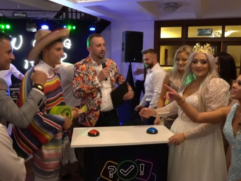 Staramy się zadowolić wszystkich gości weselnych, dlatego non stop wprowadzamy nowoczesne atrakcje jak familiada, jaka to melodia, gadżety dla gości sombrero, ponczo, zabawkowe gitary, tamburyno, pałki LEDowe, czy pistolet CO2 (wyrzutnia mgły), ciężki dym na pierwszy taniec itp.
