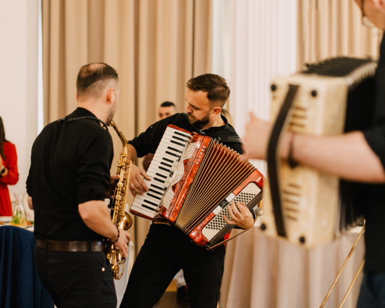 - prawdziwa biesiada - na Wasze życzenie wychodzimy do gości, żeby poprowadzić biesiadę pod domem oraz przy stołach. Z akordeonami, saksofonem i tamburynem tworzymy niepowtarzalną, swojską atmosferę, która integruje wszystkich.