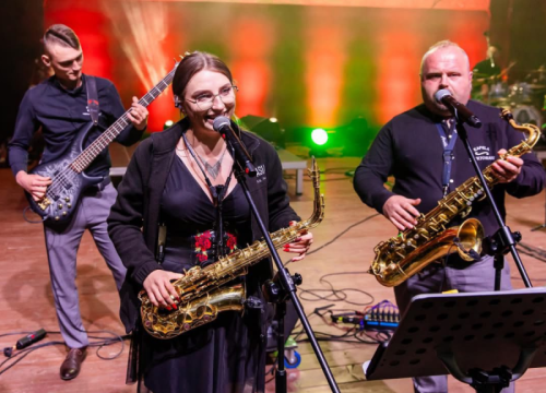 - prawdziwe brzmienie - korzystamy z instrumentów, które tworzą autentyczne, energiczne brzmienie. W naszym składzie znajdziecie: keyboard, akordeon, saksofony (alt, tenor, klarnet, sopran), instrumenty perkusyjne, gitarę basową i gitarę elektryczną. Dzięki temu każda nuta, którą usłyszycie, jest grana z serca.