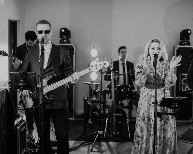 Zespół gra w 100% na żywo w składzie 5-osobowym: wokal żeński, wokal męski/ gitara basowa, gitara elektryczna, instrumenty klawiszowe, perkusja. Na życzenie Pary młodej może z nami zagrać saksofonista. Posiadamy własne nagłośnienie i oświetlenie.